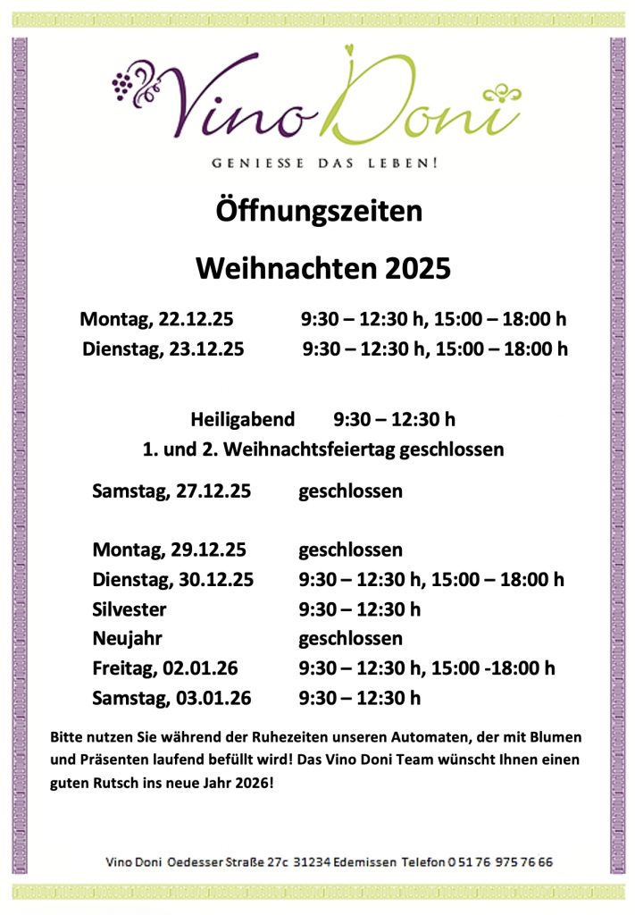 Herzlich willkommen auf unserer Website. Hier finden Sie eine Auswahl an exquisiten Weinen aus aller Welt. Ob Sie einen trockenen Rotwein aus Frankreich, einen fruchtigen Weißwein aus Italien oder einen prickelnden Sekt aus Spanien suchen, wir haben für jeden Geschmack etwas dabei. Und das Beste: Wir sind nicht nur online, sondern auch persönlich für Sie da. Besuchen Sie uns in unserem gemütlichen Weinladen und lassen Sie sich von unseren Experten beraten. Wir freuen uns auf Sie und Ihre Geschmacksknospen.
